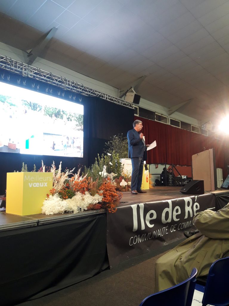 En cette période pré-électorale qui impose aux élus de faire preuve de réserve, Lionel Quillet a choisi de présenter aux 1000 rétais présents, à la salle polyvalente du BOIS Plage, l’ensemble des actions de la CDC, sous un habillage de science -fiction qui s’est révélé très démonstratif, en filigrane derrière l‘humour.